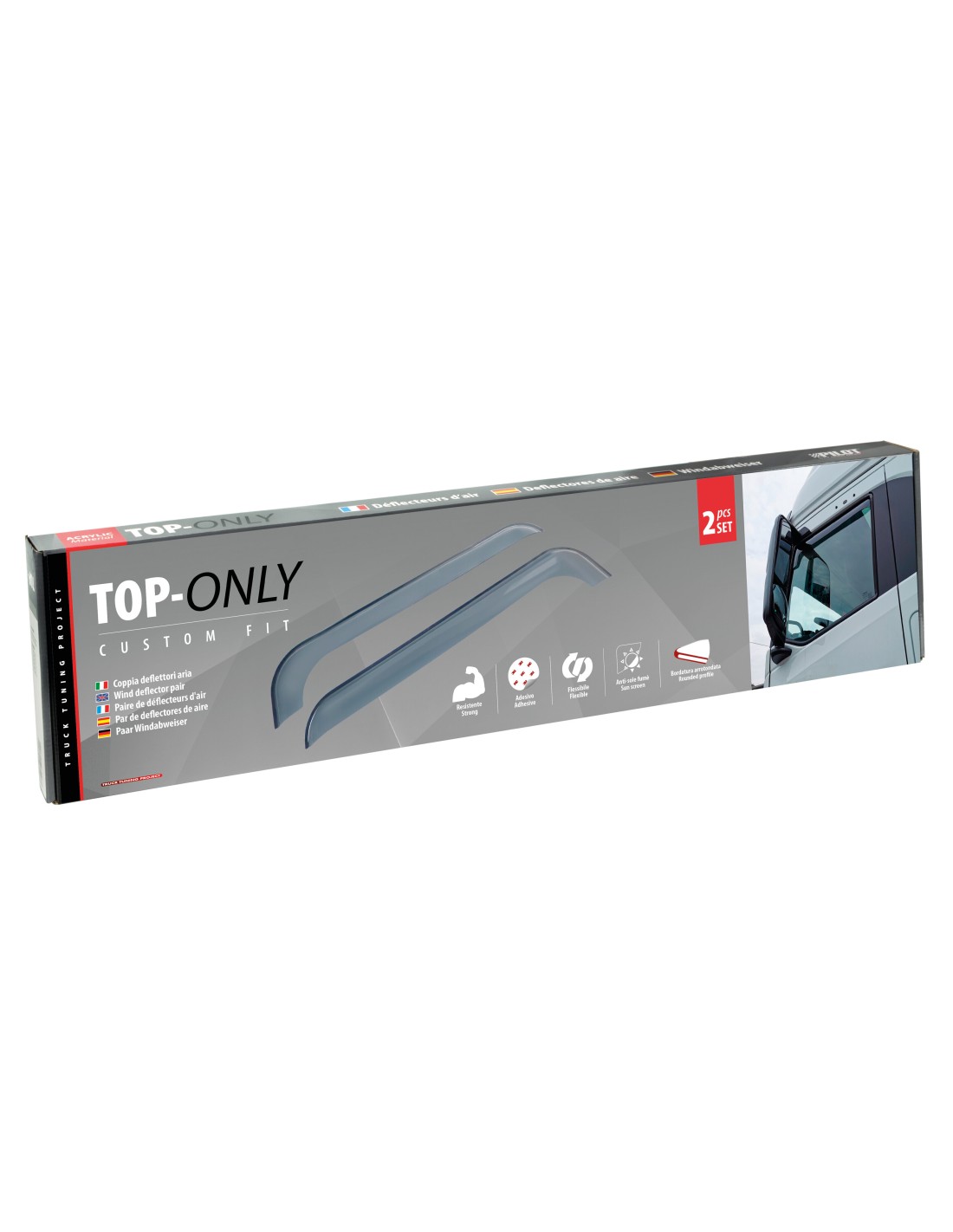 • Ottima protezione da pioggia e neve• Garantiscono la ventilazione all'interno dell'abitacolo• Riducono la turbolenza ed il rumore dell’aria durante la guida con i finestrini abbassati• Prodotti "su-misura" per ogni singolo modello di camion, si installano perfettamente senza forare o danneggiare le guarnizioni• Un must per i fumatori. Con il finestrino leggermente aperto, il fumo fuoriesce rapidamente• In estate l'aria circola e non vi è alcun dannoso accumulo di calore• Realizzati in acrilico fumé di alta qualità, antiurto e anti-scheggia con spessore 2 mm• Adesivo speciale 3M® a presa forte• Facili da installare e pulire