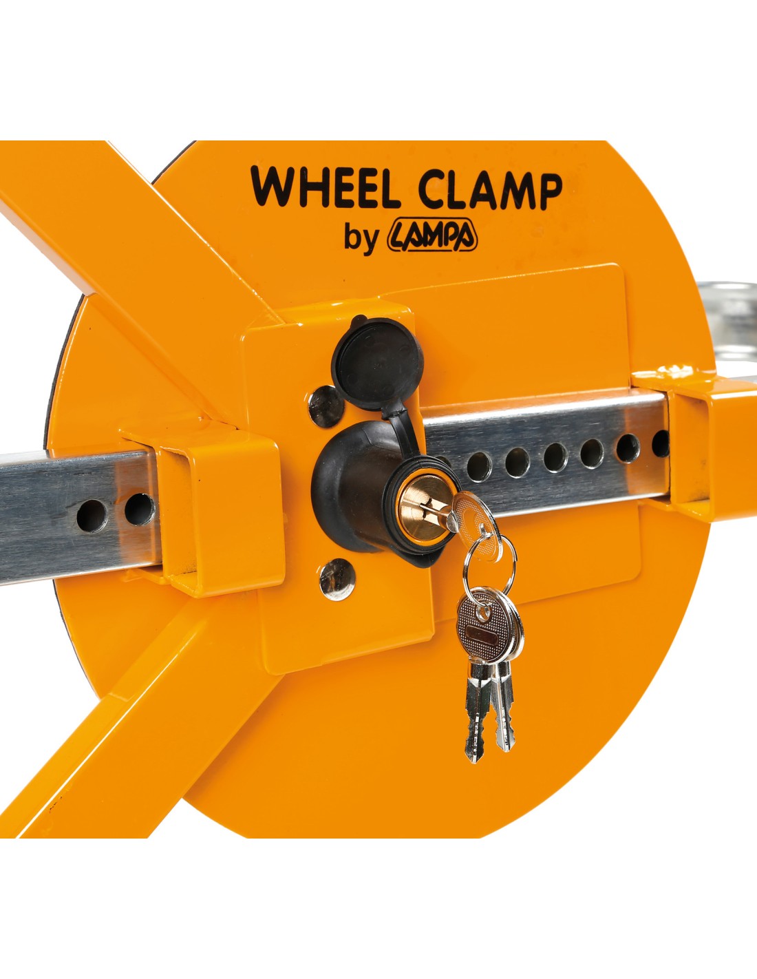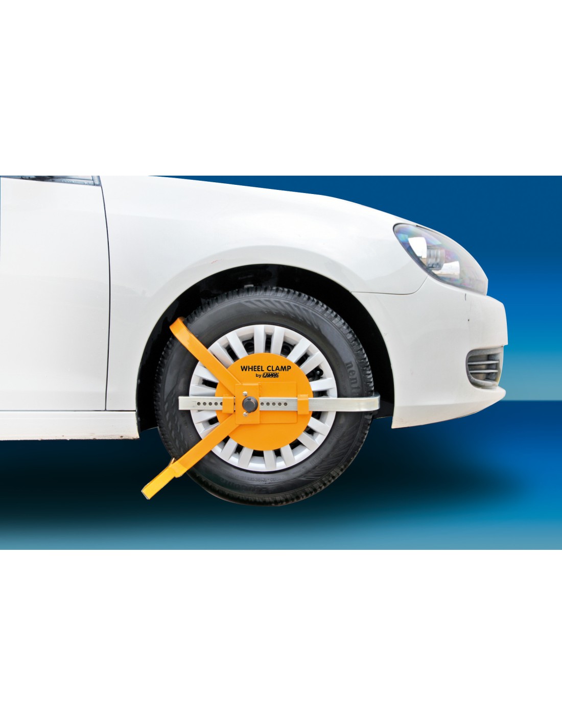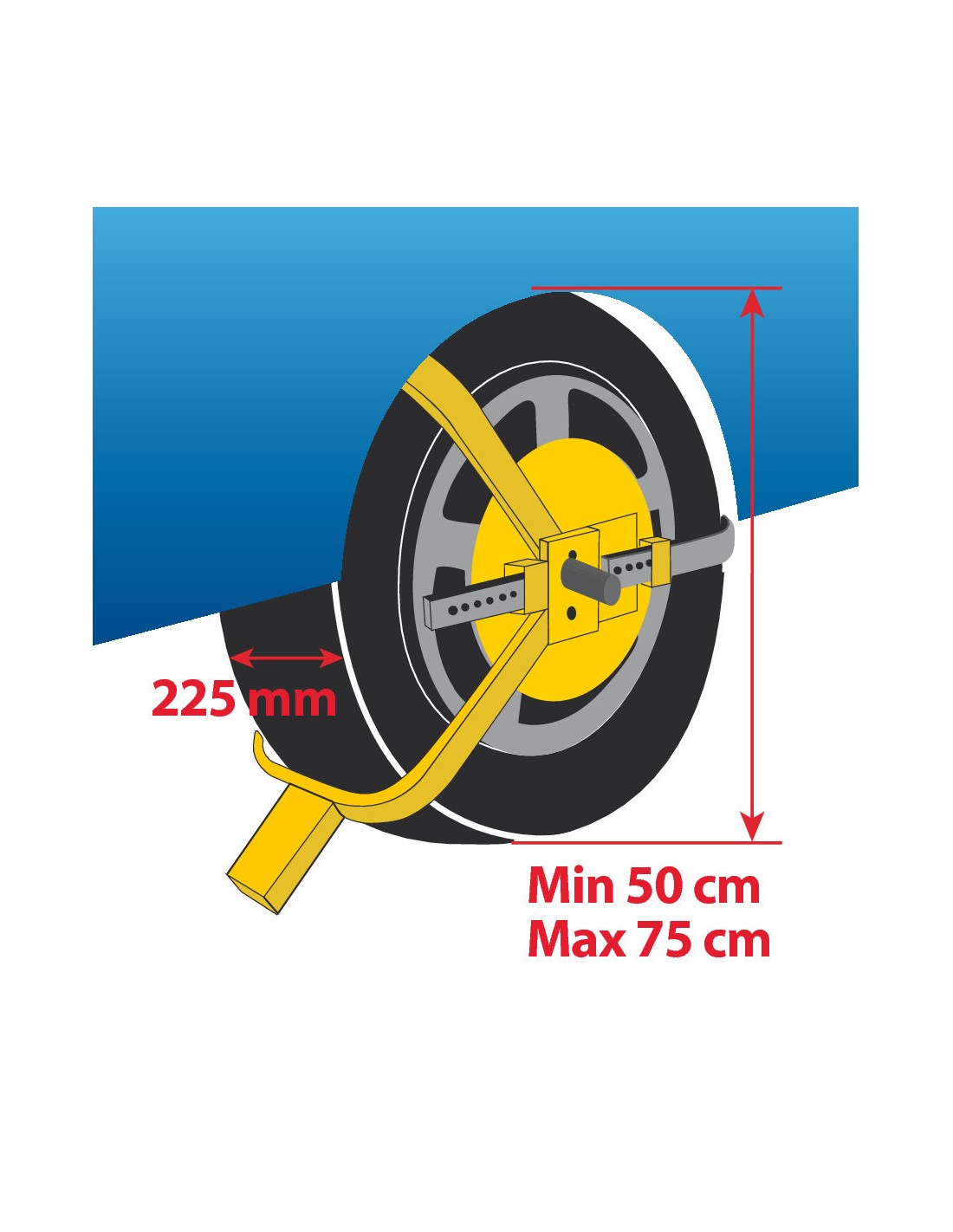 - Si applica ad una ruota anteriore e immobilizza il veicolo impedendone il movimento.- Ideale per auto, roulotte, rimorchi...- Universale per tutte le ruote da Ø 13” a 18” con larghezza fino ad un massimo di 225 mm.- Con disco coprimozzo per impedire lo svitamento dei bulloni della ruota (non installabile su pneumatici larghi).- Serratura speciale con copertura impermeabile e doppia chiave in dotazione. - Ripiegabile, occupa poco spazio quando non in uso.