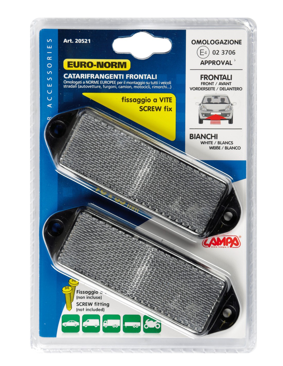 2 pezzi. Omologati a norme europee. Fissaggio tramite viti (non incluse)