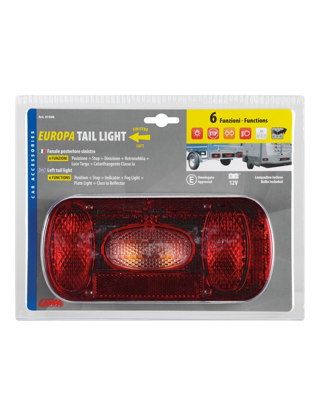 Catarifrangente classe IA. Omologazione EuropeaLampadine incluse (1x): P21W, P21/5W, PY21W, C5WPosizione, stop, direzione, retronebbia, luce targa, catarifrangente classe IA. Omologazione EuropeaLampadine incluse (1x): P21W, P21/5W, PY21W, C5W