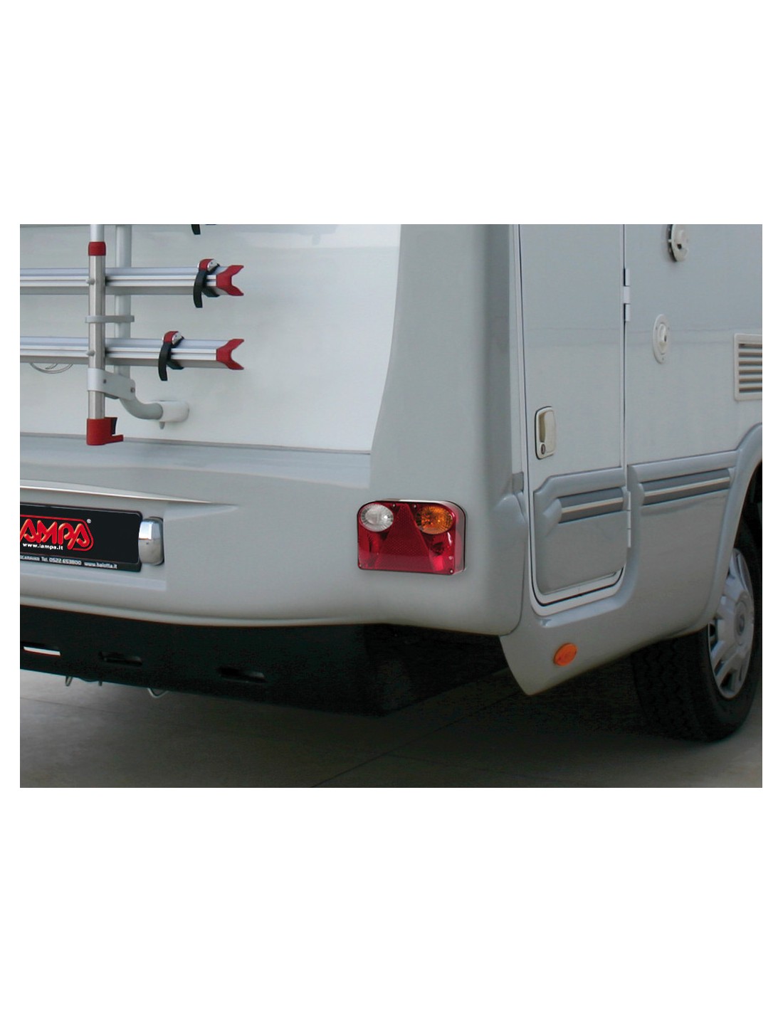 Posizione, stop, direzione, retromarcia, luce targa, catarifrangente triangolare. Omologazione EuropeaLampadine incluse (2x): P21W, P21/5W