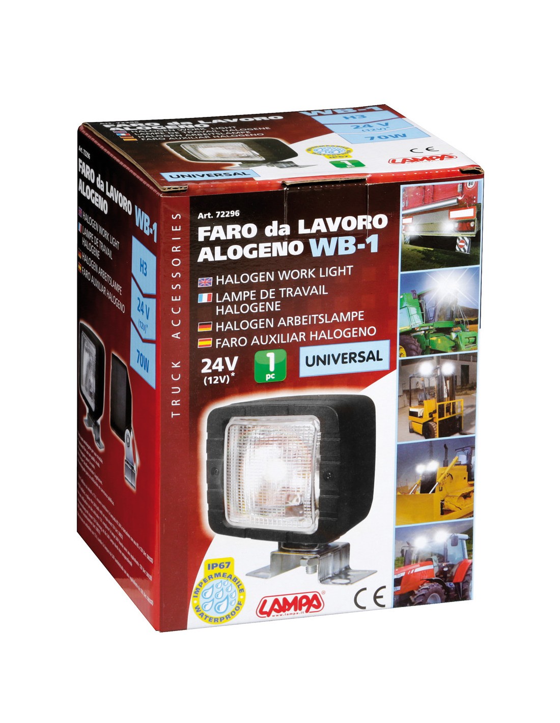 Staffa di fissaggio inclusa. Lampadina 24V - H3 - 70W inclusa.