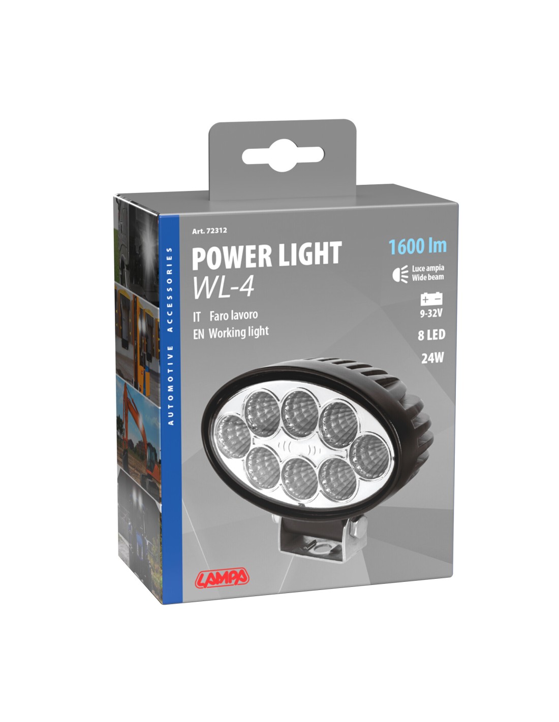 Struttura in alluminio, lente in PMMA, impermeabile IP67. Staffa in acciaio completa di viti per il fissaggio. Luce ampia multivoltaggio da 24W (8 led x 3W), 6000°K - 1600 lumen. Particolarmente indicato per fuoristrada, camion, trattori, muletti, escavatori, ecc.