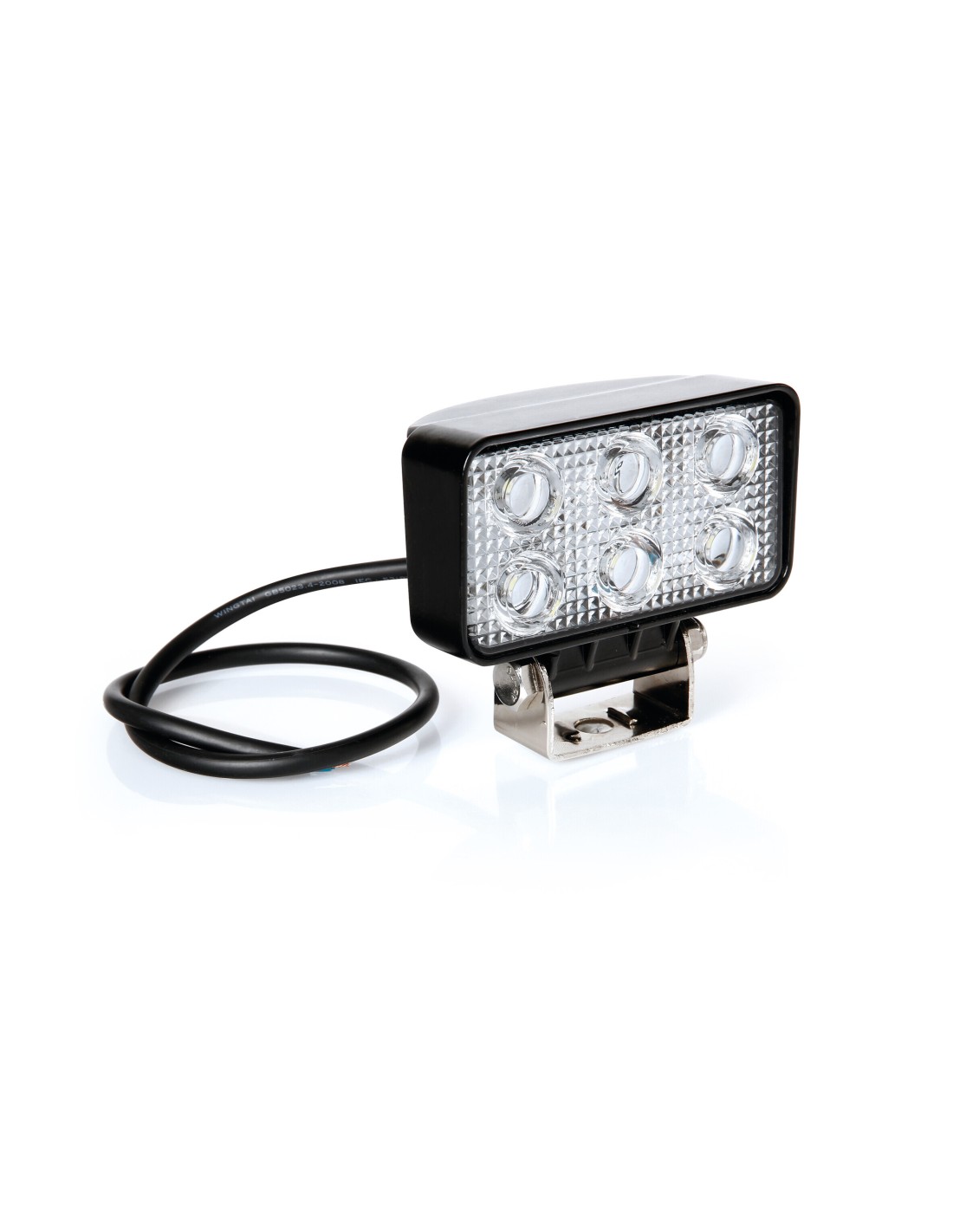 Struttura in alluminio, lente in PMMA, impermeabile IP67. Staffa in acciaio completa di viti per il fissaggio. Luce focalizzata multivoltaggio da 18W (6 led x 3W), 6000°K - 1200 lumen. Particolarmente indicato per fuoristrada, camion, trattori, muletti, escavatori, ecc.