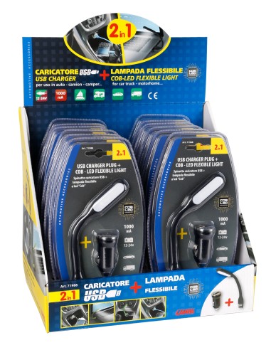 Lampada flessibile a LED COB + caricatore USB 12/24V - Display 12 pz