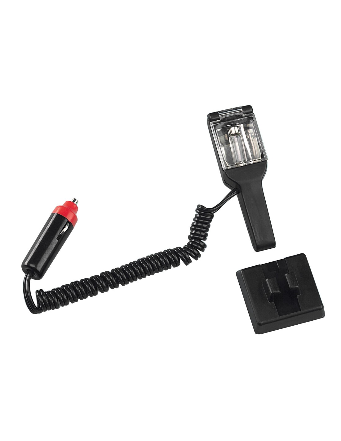 Con cavetto a spirale. Fornita con base portalampada adesiva