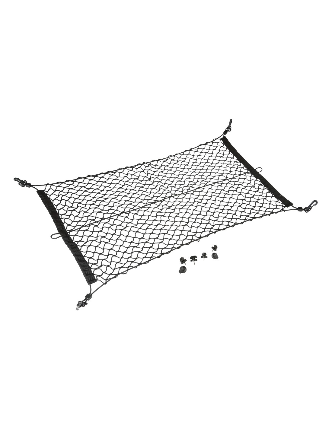 Trattiene in posizione gli oggetti durante la guida. Qualità “Primo Equipaggiamento”.Il kit di accessori in dotazione (ganci in plastica ad alta resistenza + punti di fissaggio fix-point con vite autofilettante) permette 2 diversi tipi di fissaggio anche sui veicoli senza predisposizione originale.Multiuso, per auto, camion, camper, imbarcazioni