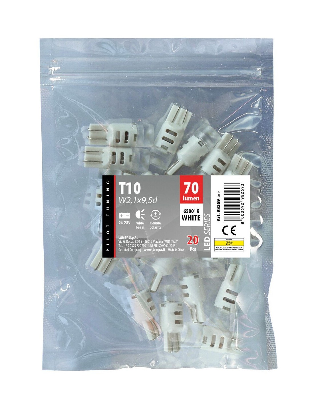 24/28V Mega-Led 3 - 3 SMD x 1 chip - (T10) - W2,1x9,5d - 20 pz - Busta - Bianco - Doppia polarità
