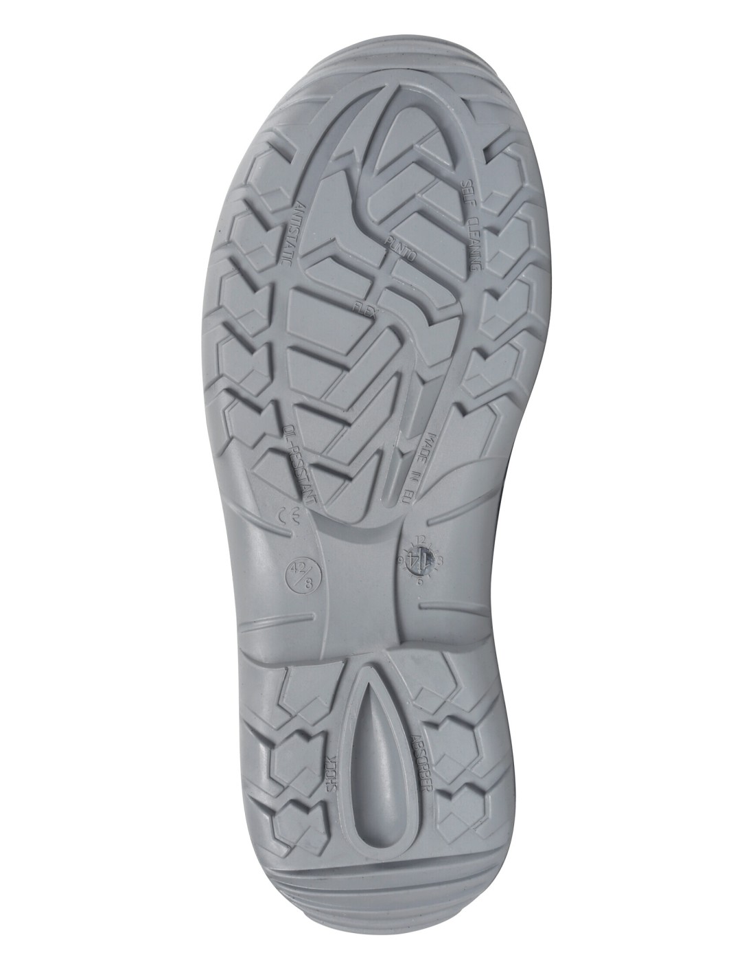 • Tomaia in microfibra traspirante.• Sottopiede in pelle naturale, anatomico, traspirante, antimicotico e defaticante.• Fodera in tessuto traspirante.• Intersuola in soffice PU espanso.• Puntale in materiale composito resistente agli urti fino a 200J.• Battistrada in PU compatto antiabrasione, antiolio, antiscivolo ed antistatico.• Cinturino regolabile con inserti riflettenti.• Certificazione EN 20345:2011 SB EA SRC.