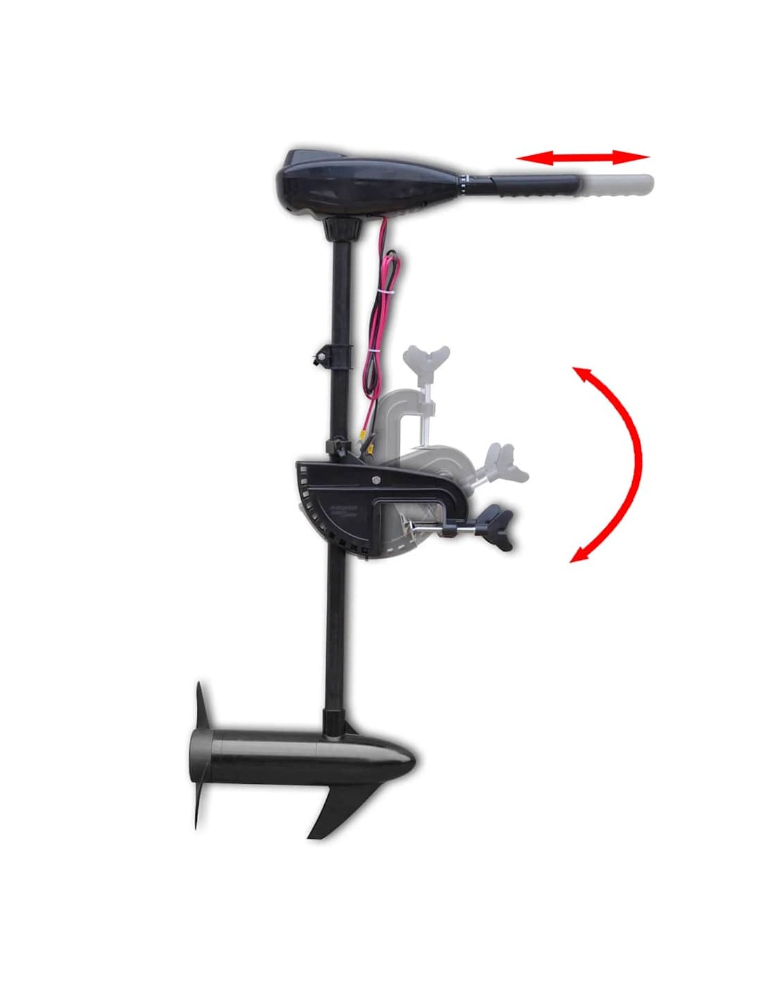 Il motore può essere ruotato di 360° e dispone di 8 velocità diverse di cui 3 di retromarcia. Per evitare problemi in acque poco profonde, è possibile ripiegare il motore. Anche l'impugnatura dello sterzo è regolabile.