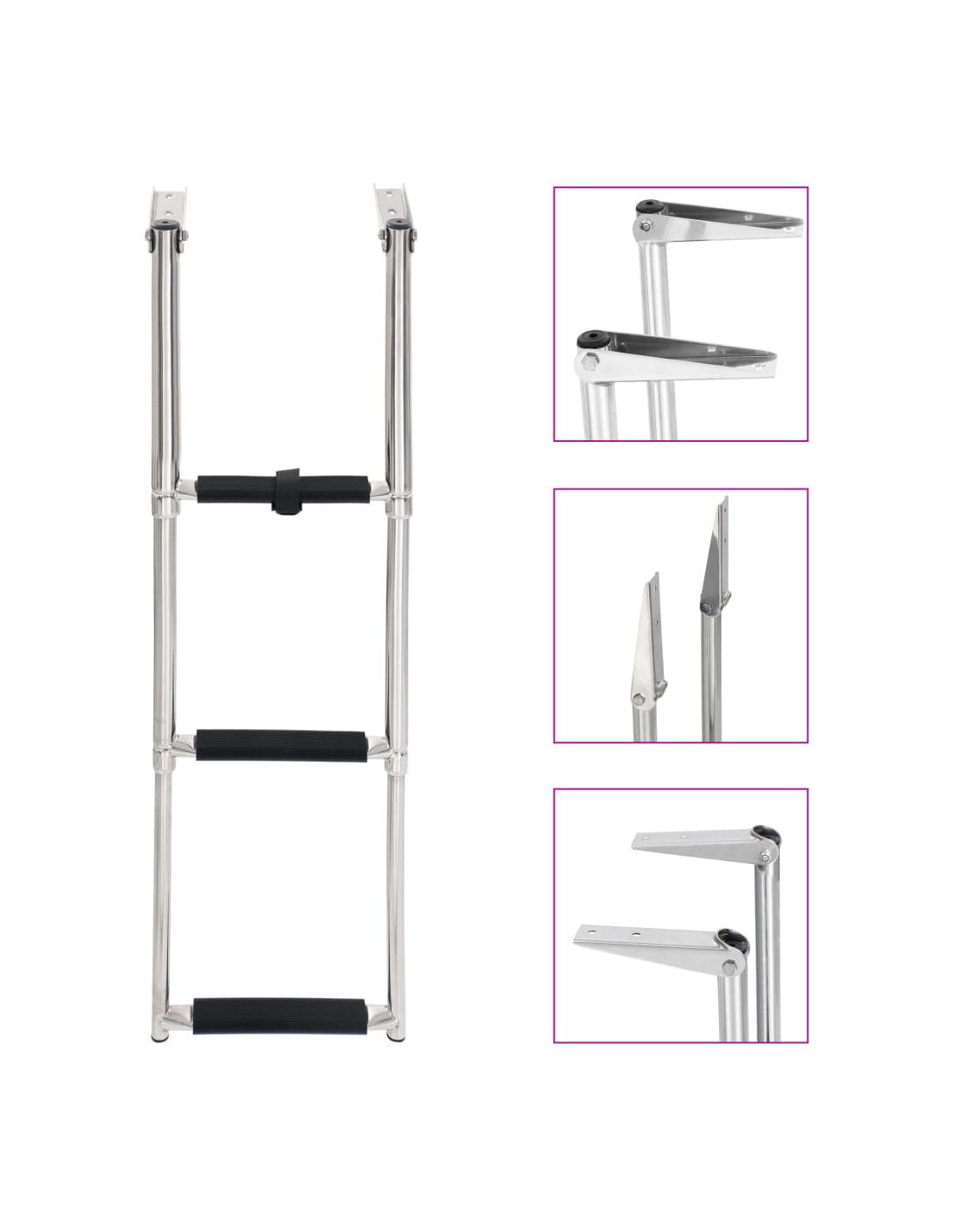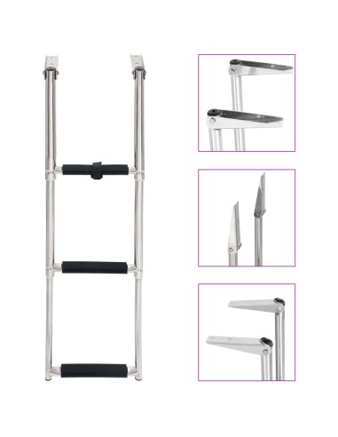 Il design telescopico distintivo assicura che la scala possa piegarsi rapidamente e facilmente, in modo da aiutarti a salire a bordo in sicurezza. Ogni gradino ha un battistrada antiscivolo che può garantire la massima sicurezza. Realizzata in acciaio inossidabile ad alta resistenza, la scala per barche offre la massima durata e può sopportare un peso elevato di 200 kg. Una cinghia può fissare i gradini quando non in uso. Gli accessori di montaggio sono inclusi.