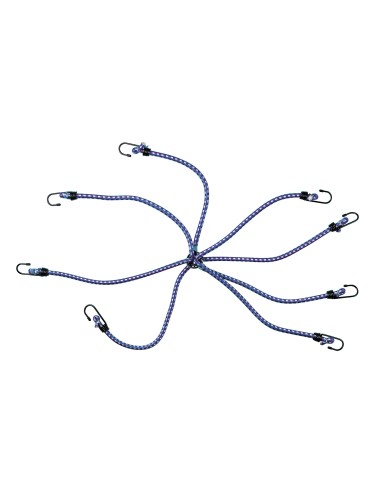 8 braccia da 40 cm con anello di raccordo. Ganci in acciaio temperato plastificato, con sigillo antigraffio e anti-rottura