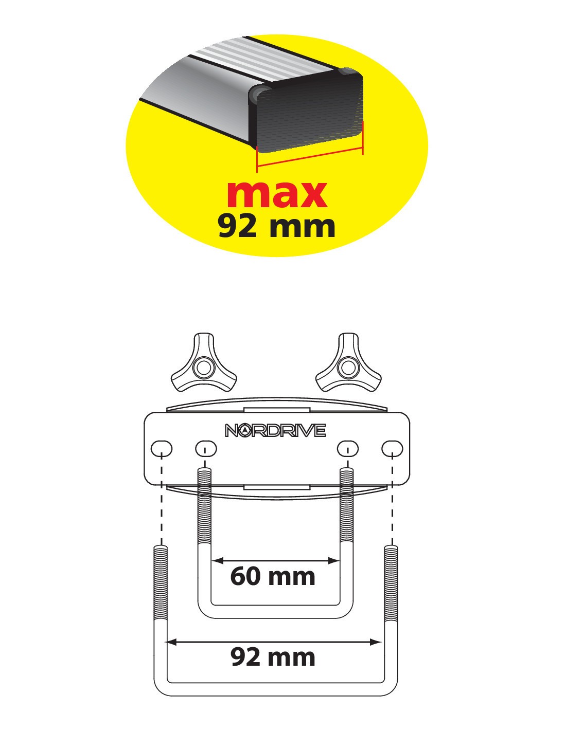 Per box tetto linea Nordrive Box.Comprende: Pomelli, piastrine con doppia foratura, passa cinghia. Doppio set di 4+4 cavallotti (L 60 mm+L 92 mm), 2 pratiche cinghie per il bloccaggio interno del carico e libretto di istruzioni / manutenzione.