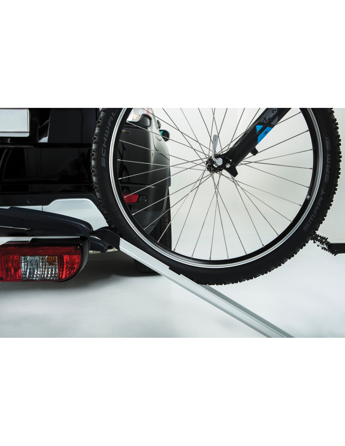 Utile per caricare le biciclette elettriche senza sforzo. Pratiche clips per fissarla al portabici durante il viaggio. Per i portabici JustClick e FoldClick.