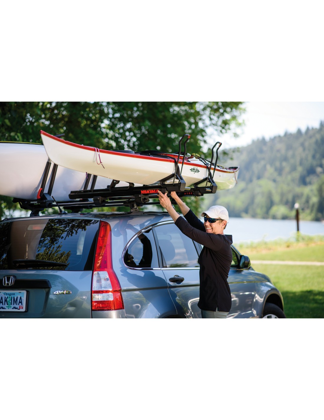 • Carica e scarica facilmente kayak e tavole ad altezza busto a lato dell’auto grazie al meccanismo di scivolo e inclinazione• Capacità massima di carico 36 Kg per kayak di grandi dimensioni o 2 tavole• Fissaggio universale sulla maggior parte delle barre portatutto• Costruito con materiali leggeri per non rubare capacità di carico alle barre• Richiudibile completamente quando non in uso per ridurre al minimo resistenza e rumore• Scorre verso il basso fino ad una distanza di 660 mm dall’altezza delle barre portatutto• Assistenza al carico per il 30-45% del peso totale (a seconda della larghezza del kayak/tavola)• Culle rivestite in morbido feltro si adattano alla forma dello scafo per un trasporto sicuro• Cinghie di fissaggio incluse• SKS locks vendute separatamente