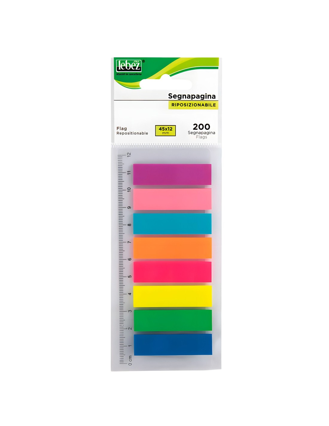 Set 8 blocchetti in 8 colori da 25 segnapagina (42x12 mm) più righello (120 mm)
