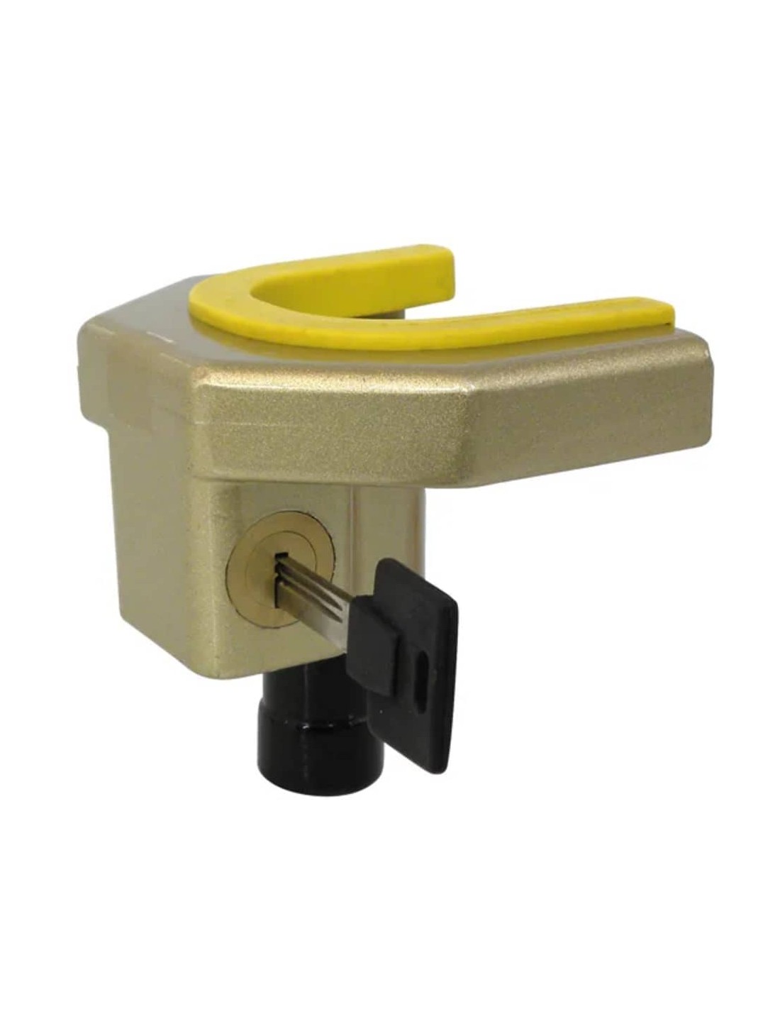 Previene efficacemente il furto della vostra roulotte o rimorchio per cavalli. Il coperchio della serratura viene fornito con 2 chiavi e si adatta a tutti i sistemi di aggancio standard. Tuttavia, non è adatto se il rimorchio è collegato all'auto.