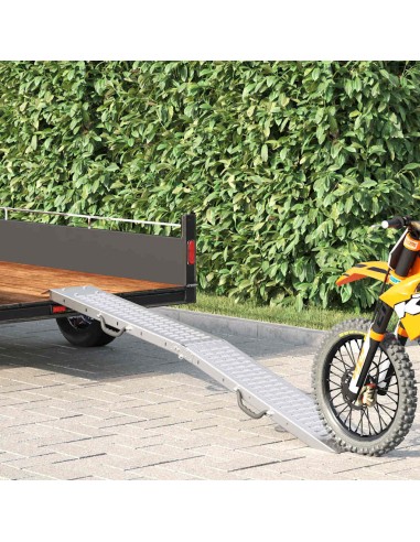 Questa rampa di carico per veicoli è una soluzione pratica e comoda pensata per chi si occupa di trasportare frequentemente veicoli o attrezzature. Con il suo elegante colore argento e il design industriale, si adatta a qualsiasi garage o officina. Realizzata in acciaio zincato, è duratura e facile da usare per l'esterno, specialmente d'estate. La struttura pieghevole la rende ideale per chi cerca comodità nel trasporto e nello stoccaggio.